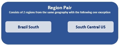A regional pair consists of two regions within the same geography. However, there is one exception to this. Brazil South region is paired with South Central US region, which obviously, is outside of Brazil's geography.
