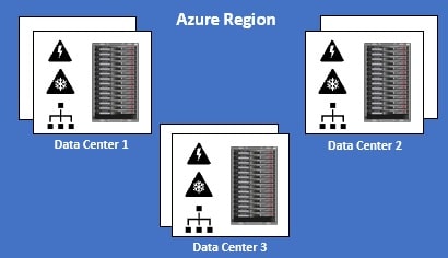 An azure region is made up of one or more datacenters. If availability zones are enabled, an azure region contains a minimum of three availability zones. An Availability Zone is made up of one or more datacenters. So the point is, an Azure region contains one or more datacenters or 3 or more availability zones if enabled.